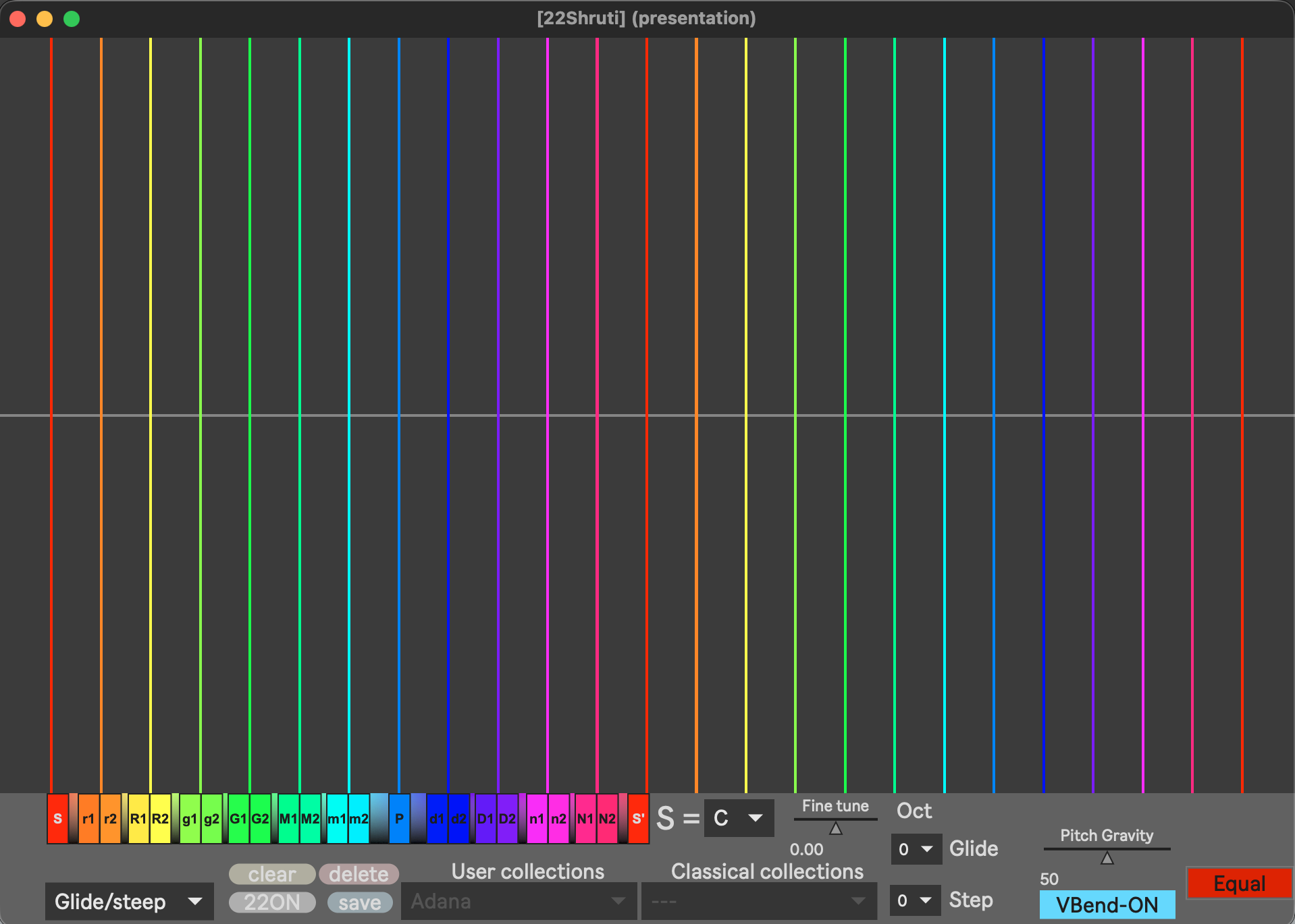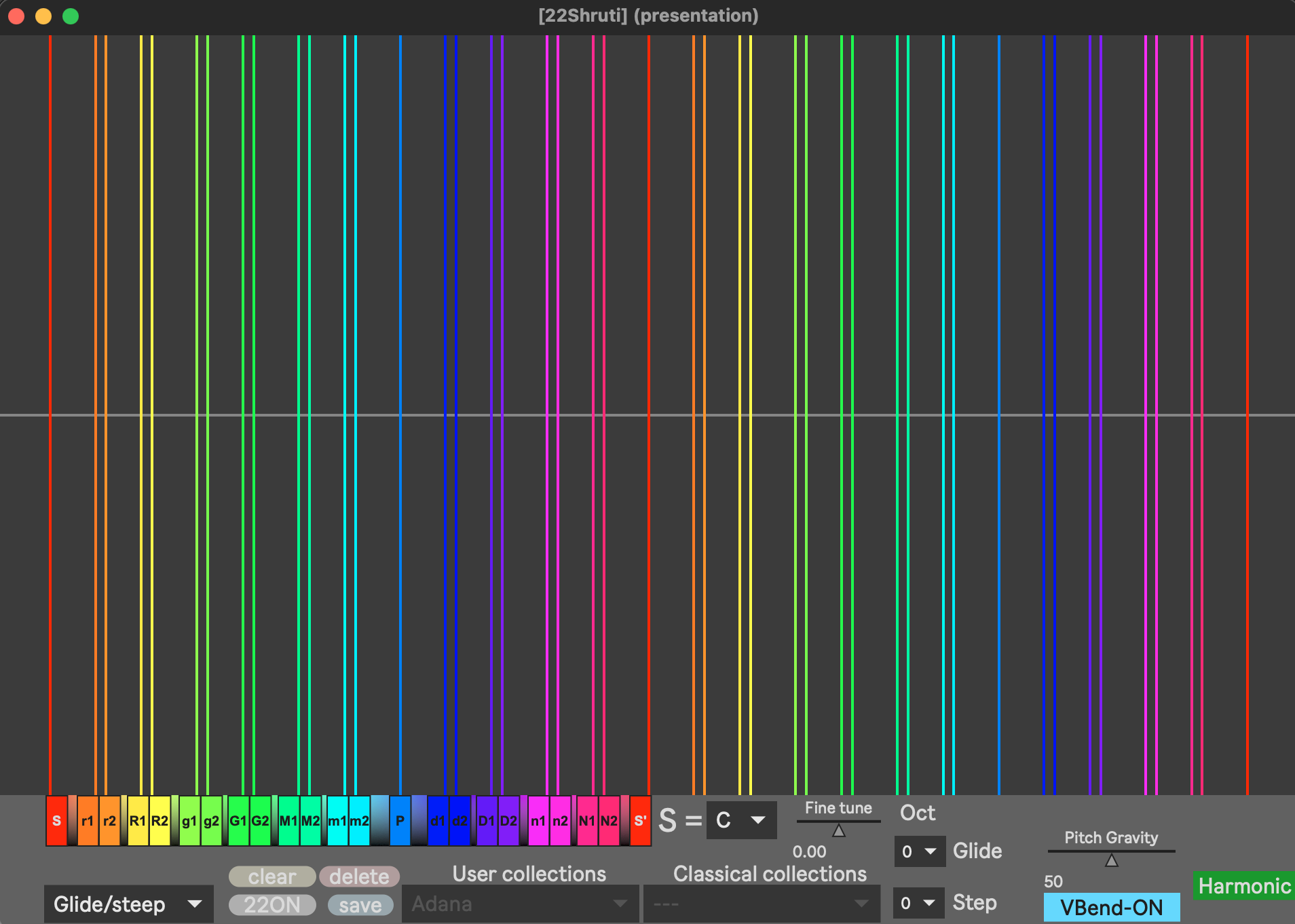 22 Shruti notes is near 12 TET. Near, but not equal. Difference compensate by Pitch bend in MPE mode. This way i avoid of using a tons of microtonal tables. I just want to « translate » 22 Shruti to Exquis. Pitch bend convert sucesfully, even glide to nearest note work well. Exquis sound like indian instrument. But layout remained unmodified - only major gamma although colorized in Exquis app. That would be nice to put Exquis in remote mode and translate layouts from Sensel